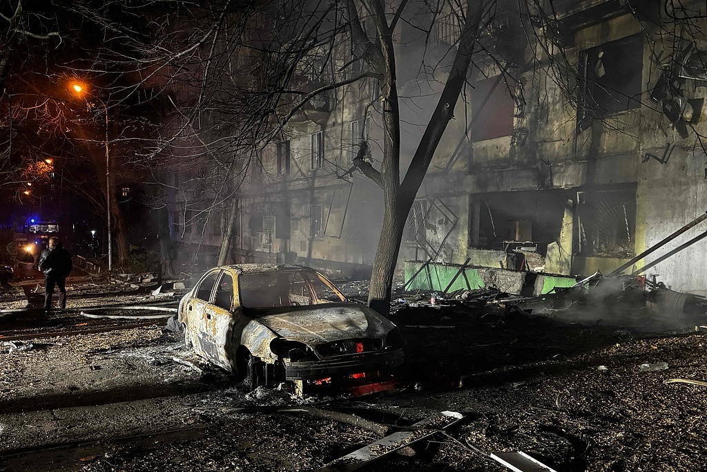 基辅市多个地区的住宅楼和民用基础设施遭到直接打击或导弹残骸坠落,导致人员伤亡。